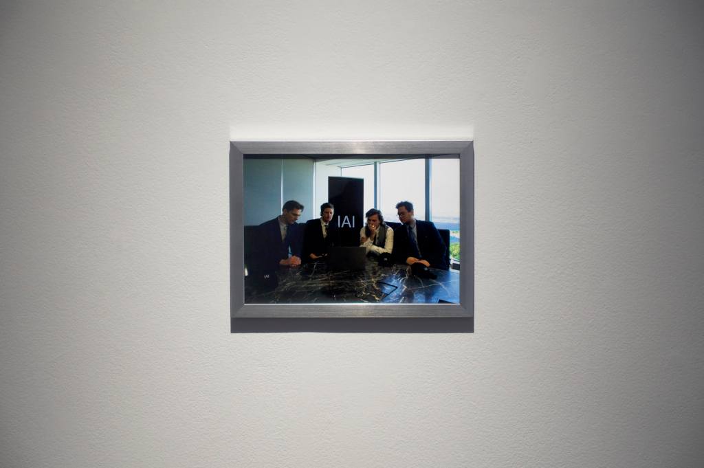 The IAI’s contribution to this exhibition also takes as its starting point a 19th-century French painting. The IAI is a new institutional initiative whose primary spokesperson is William Meadley, an artist and recent master’s graduate from Sydney College of the Arts (SCA). The IAI consists of a members’ board (a meeting of some of its core members appears in this exhibition) and is broadly concerned with opening new art institutional opportunities within—and beyond—Sydney’s urban metropolis. As part of its guiding manifesto, the IAI considers any existing location—external or internal, public or private—a potential site for the establishment of exhibition opportunities and other contemporary cultural presentations. Its freewheeling methodology is evident in the documentation of one of the IAI’s recent manifestations, viewable in this show.