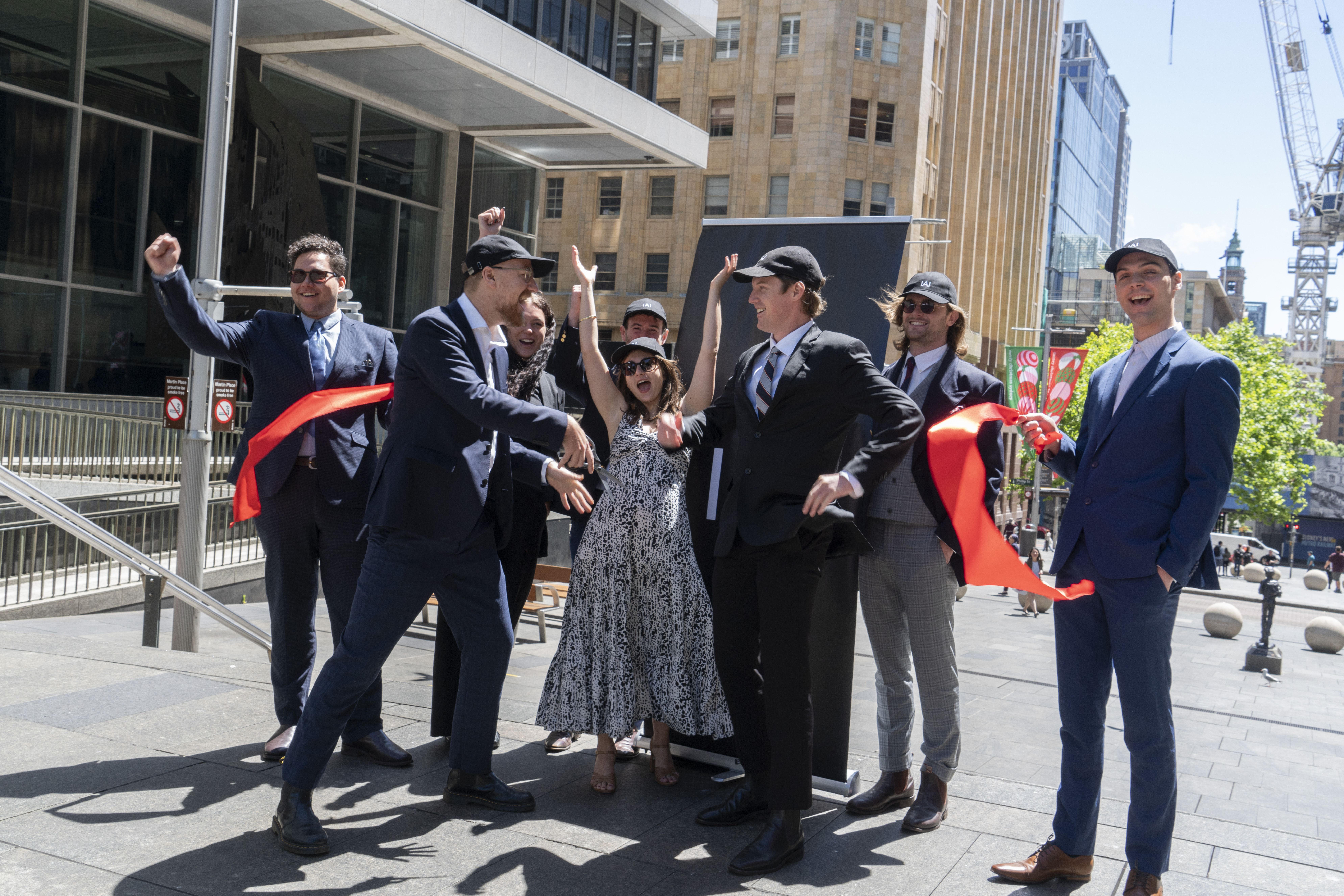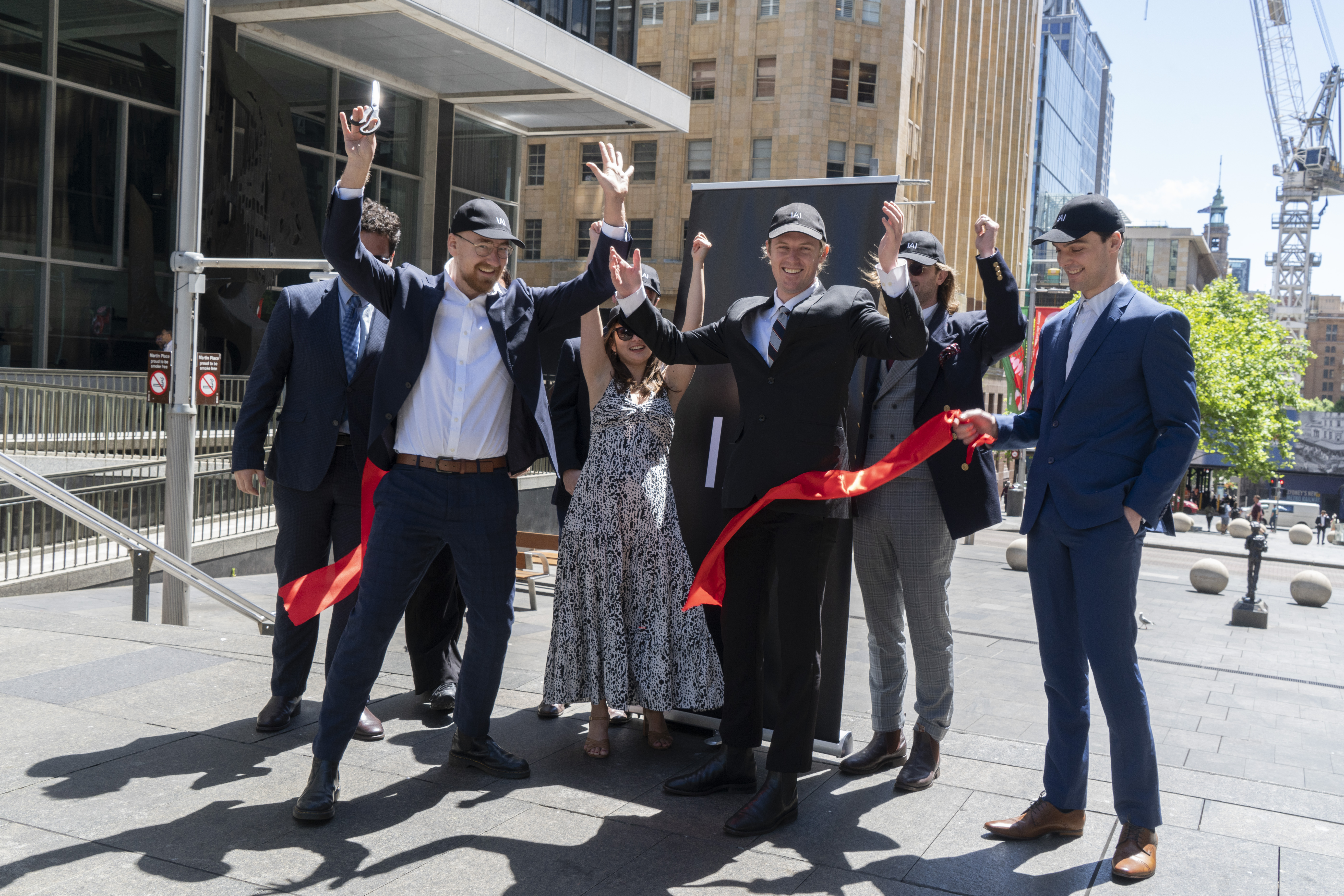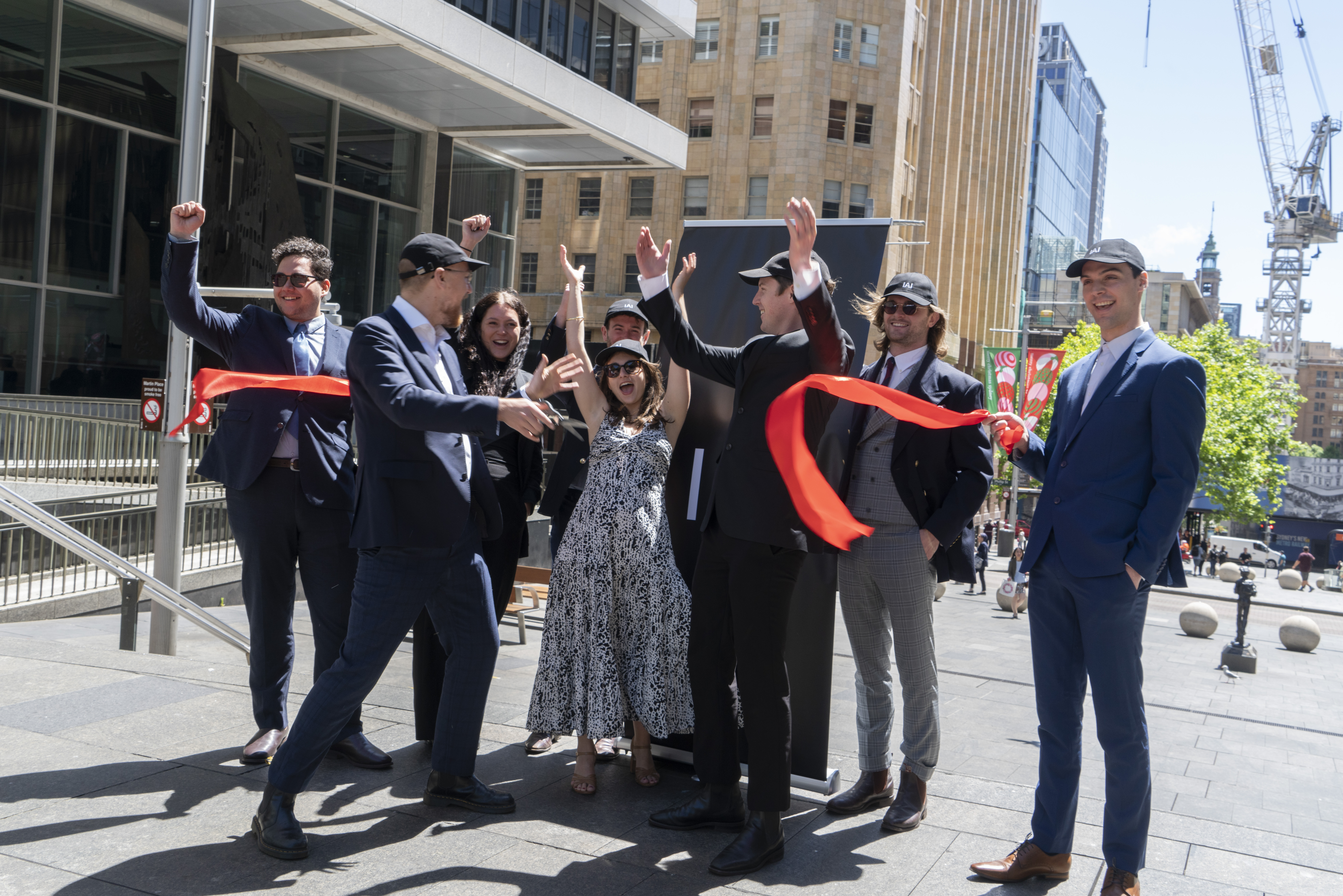IAI’s Grand Opening staged a mock institutional launch outside Sydney’s Reserve Bank, hijacking corporate ritual to probe art’s ties to capital. Wearing suits and holding champagne flutes, participants performed a ribbon-cutting ceremony in Martin Place—Sydney’s financial hub—mirroring the self-mythologizing theatrics of gallery openings.