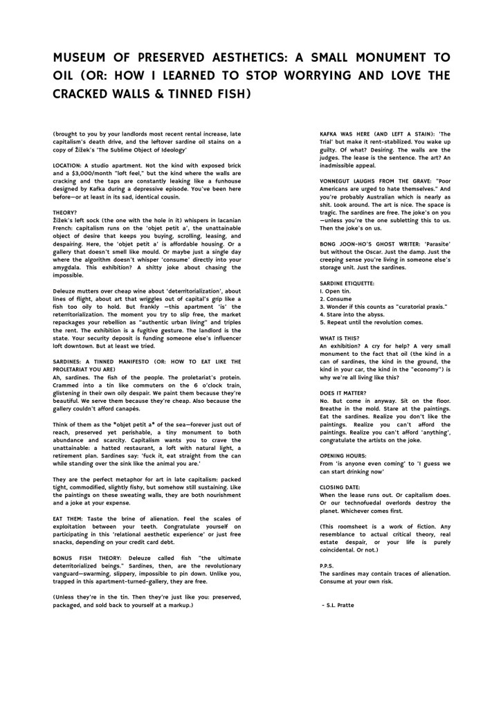 Museum of Preserved Aesthetics: A Small Monument to Oil (OR: How I Learned to Stop Worrying and Love the Cracked Walls and Tinned Fish, 2025